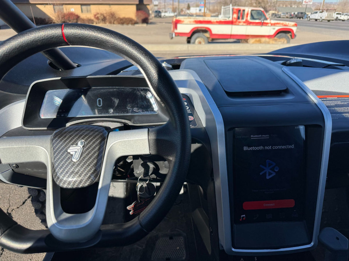 9 x 4 in. Digital Dash Information Center - Speedometer, tachometer, odometer, tripmeter, clock, hour meter, gear indicator, fuel gauge, coolant temperature, voltmeter, service indicator and codes, seat belt reminder, 1 DC outlet, 1 USB charge port