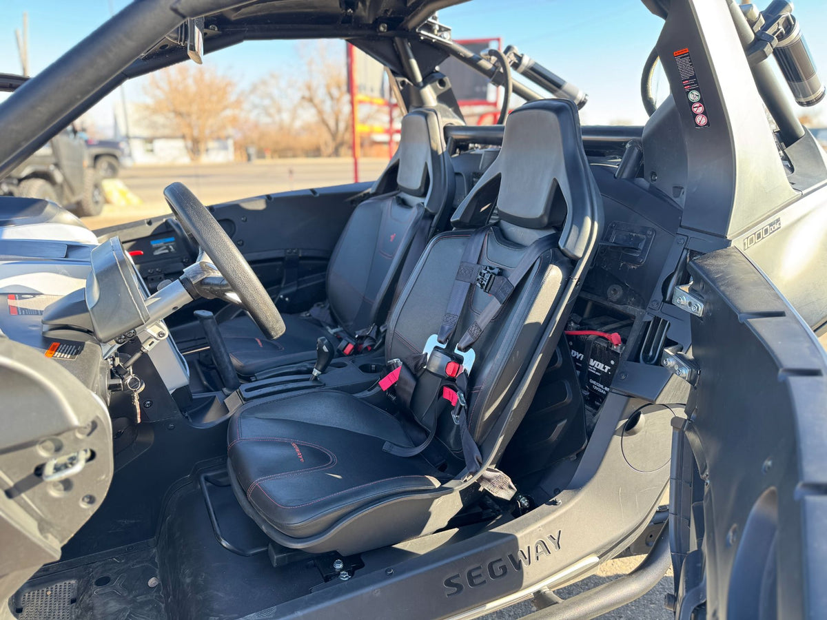Seating - 2 person capacity, Adjustable driver seat, Premium cut and sew seats with contoured seatbacks and embroidered Segway branding
