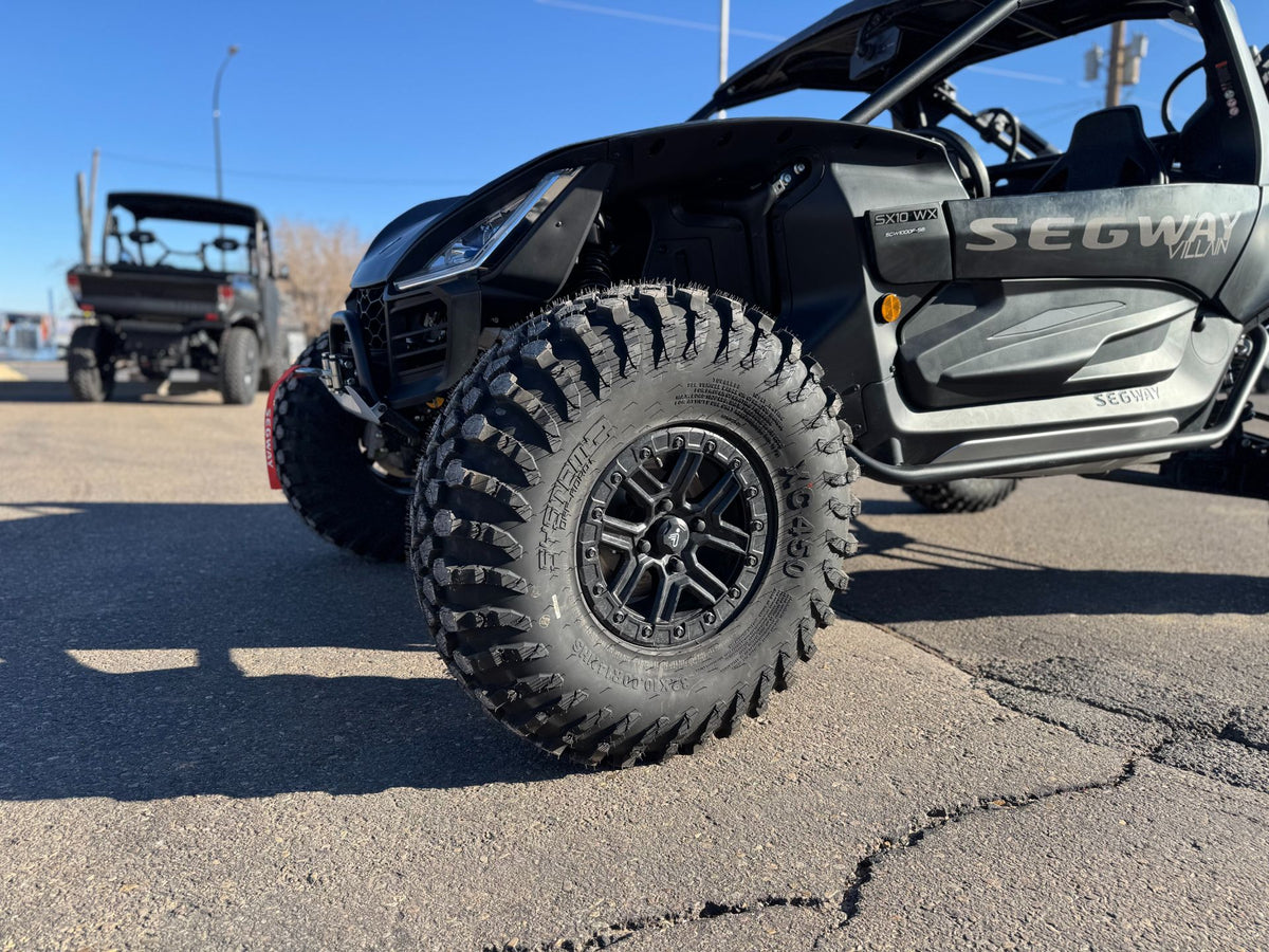 - HIGH PERFORMANCE SUSPENSION: With double A-arm suspension with up to 16" of travel in the front, a multi-link trailing arm suspension with up to 18" of travel in the rear, and 14" of ground clearance, the Villain provides a smooth ride over even the roughest terrain.