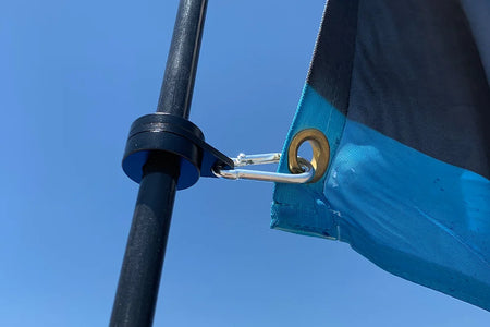 SWIVL Flag Mount - This optional accessory provides a perfect mounting solution for your flags equipped with grommets for mounting. The SWIVL is designed to work with MB Day Whips, which are a 1/2" high-quality fiberglass rod. This SWIVL mount allows the flag to spin freely on the whip so it won't bind or wrap around itself. The SWIVL flag mount comes in a pair. SWIVL gives you the ability quickly change Flags and keep them flying straight with no issues. No more zip ties or clamp mounts!