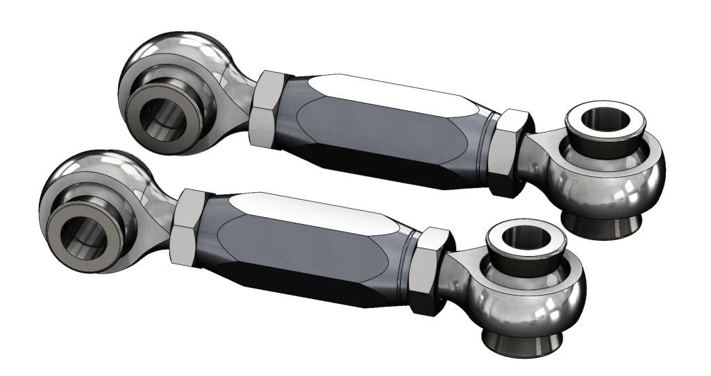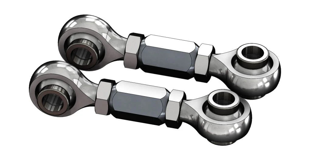 The CT Race Worx link is built from a piece of solid 6061 aluminum and drilled and tapped on both sides for American-made chromoly JMX FK rods ends with stainless spacers. All hardware is included. This is a direct bolt-on replacement with raw aluminum finish.