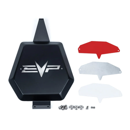 DELETE REAR VALENCE (INCLUDES HEAT SHIELD): If the customer does not care to keep their valence, the exhaust will have a signature EVP heat shield mounted to the back of the exhaust can. Heat shields are available in Black, Red, or White powder coated finishes.