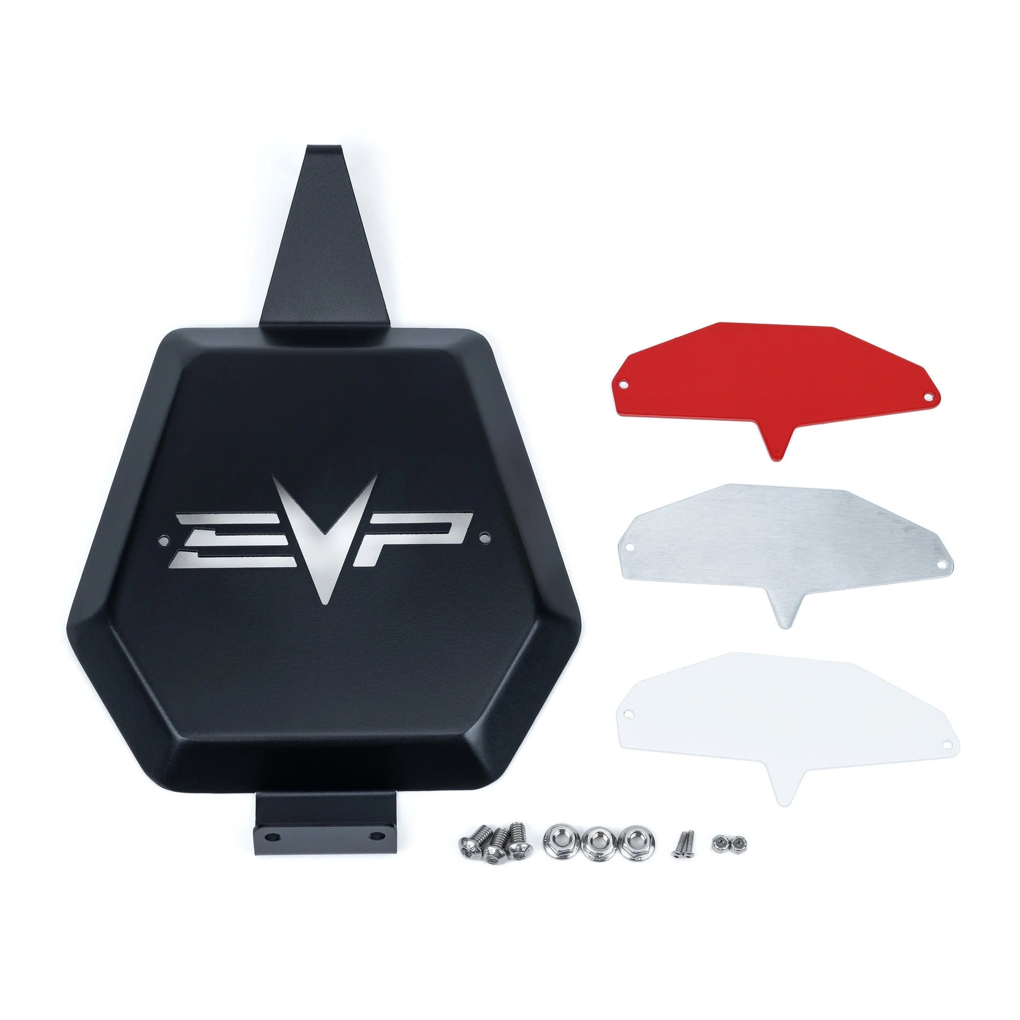 KEEP REAR VALENCE (INCLUDES BLOCK-OFF PLATE): This Magnus with included Rear Block-Off Plate is designed to work with the OEM rear valence. The block-off plate covers the OEM exhaust exit and features a black powder-coated finish with included Red, White, and Brushed Stainless rear accent pieces to make the EVP laser-cut logo pop.
