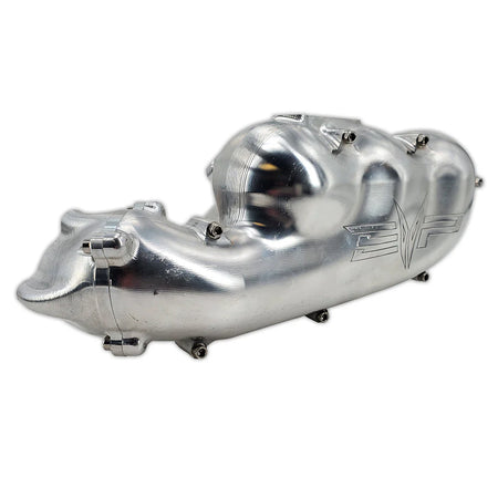 Stop limiting the power potential of your X3! The EVP Torrent Billet Intake Plenum was designed for stock turbo and big turbo applications to solve performance limitations and strength issues while providing a more balanced flow to each cylinder. The OEM plenum frequently fails at modest boost pressures. In addition, the OEM plenum is highly restrictive which can limit the power potential of your X3. Constructed of 7075 aluminum and tested to 70 psi of boost, the Torrent series billet plenum will stand up to virtually any abuse.