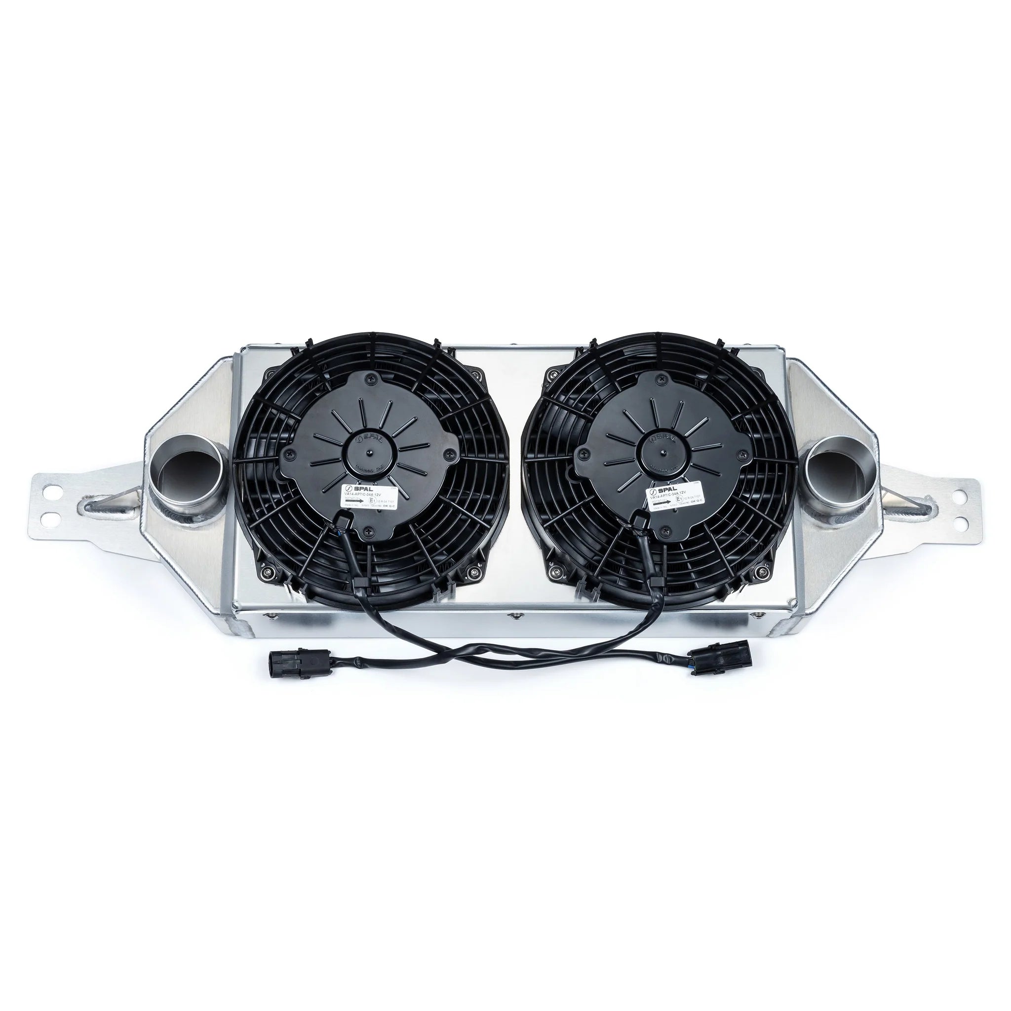 PLEASE NOTE: THE DUAL-FAN AIR-TO-AIR INTERCOOLER IS CURRENTLY ONLY COMPATIBLE WITH XP TURBO/S MODELS EQUIPPED WITH AN EVP PARAGON OR DYNOMITE BIG TURBO SYSTEM. STOCK TURBO FITMENT COMING SOON.