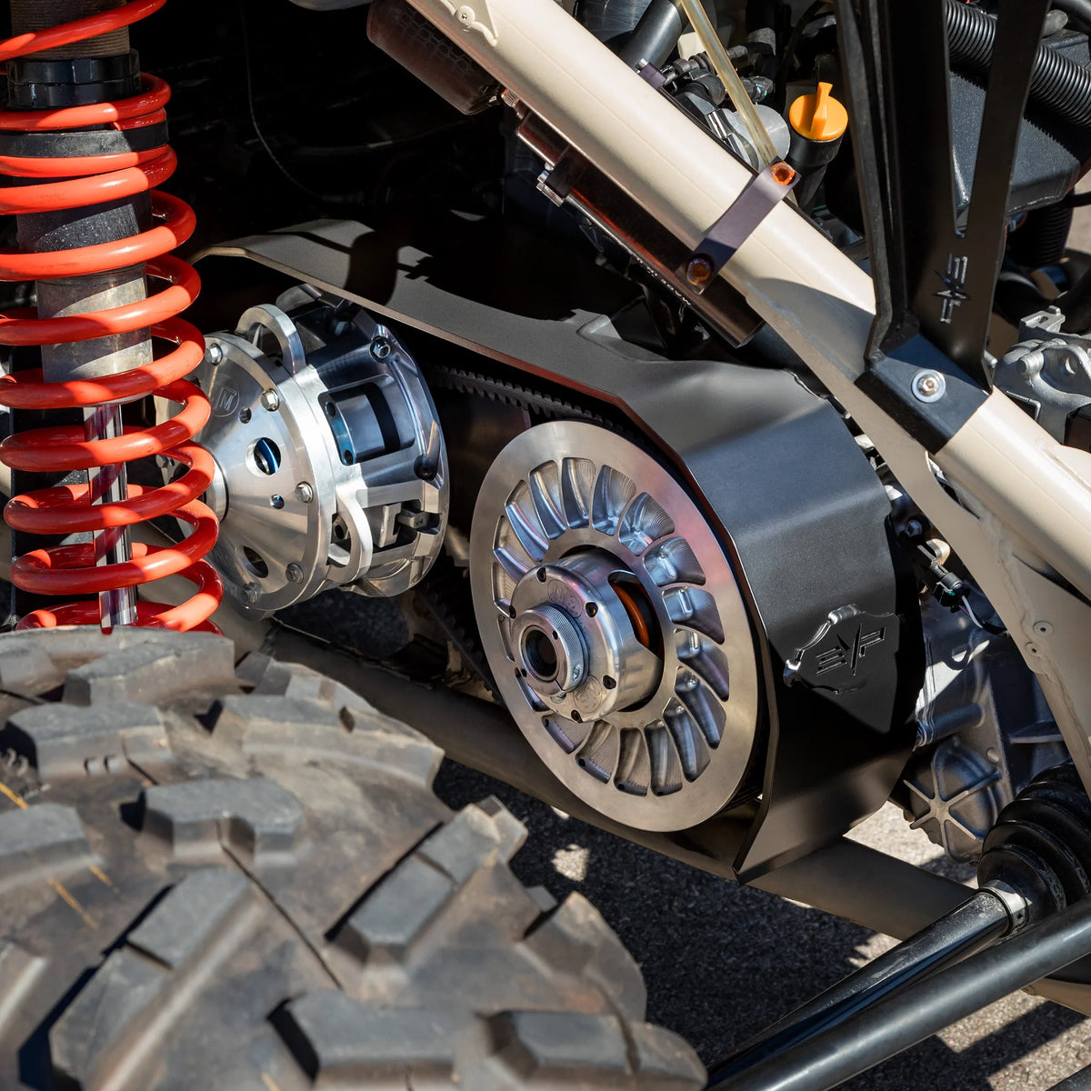 If you're pumping out high horsepower, one of the most crucial additions to any build is a reliable and strong scatter shield for added insurance against catastrophic clutch or belt failure. EVP's new Scatter Shield for the Can-Am X3 is hands-down the most durable and strongest shield on the market. Protect vital components with 1/4" aircraft-grade aluminum and a fully welded outer shield that delivers far superior protection compared to the stock plastic shroud or anything available in the aftermarket today. Additionally, the EVP X3 Scatter Shield features double the thickness at the mounting point compared to other aftermarket shields, and is the only shield compatible with the high-performance EVP X3 Torrent-B Intake Plenum as well as all other EVP and aftermarket plenums.