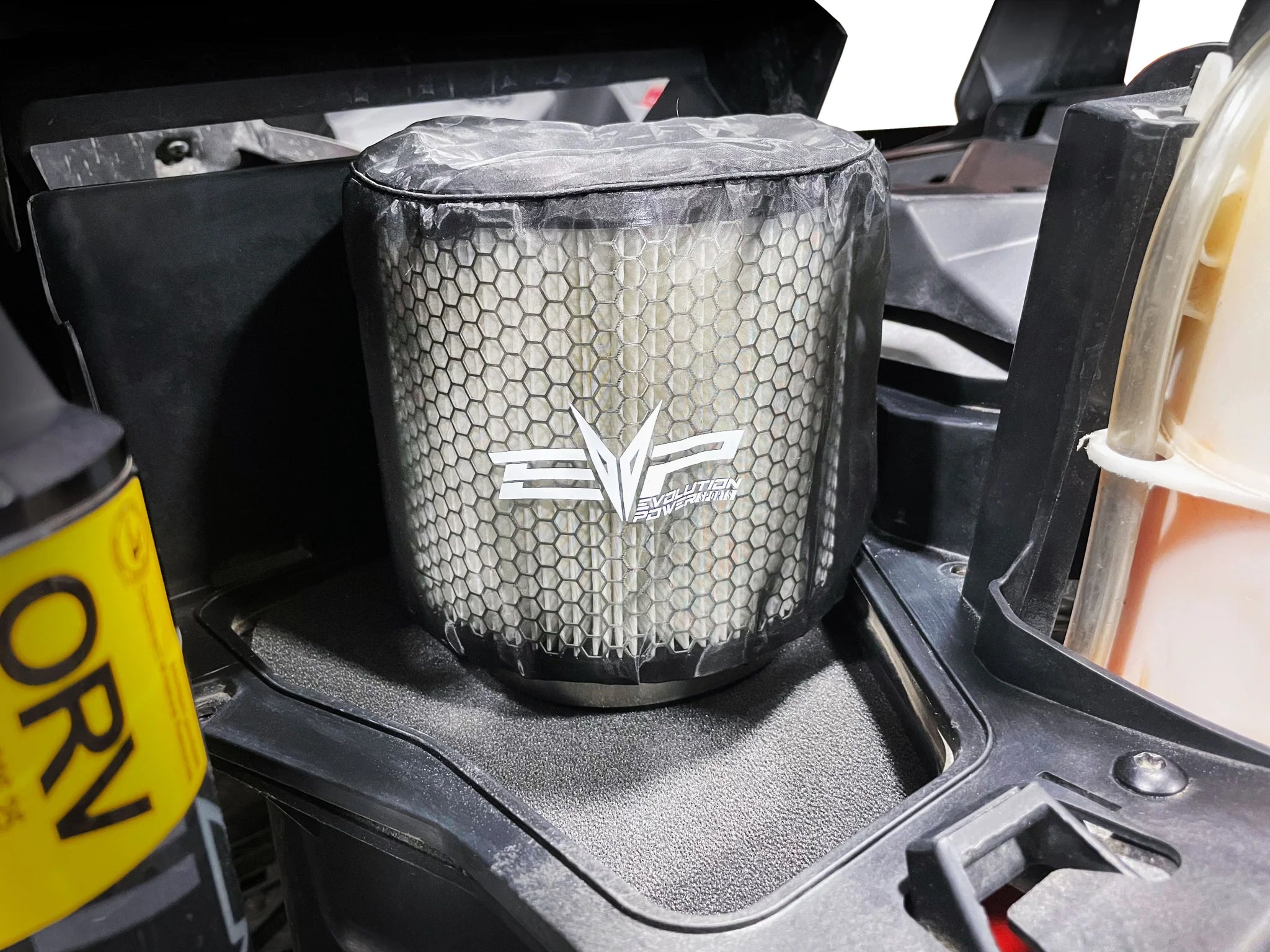 Installs directly into the OEM air filter tray without modifications, keeps all of the clutch ducts and is also compatible with the OEM air filter cover so you can keep it stealthy or run it wide open.