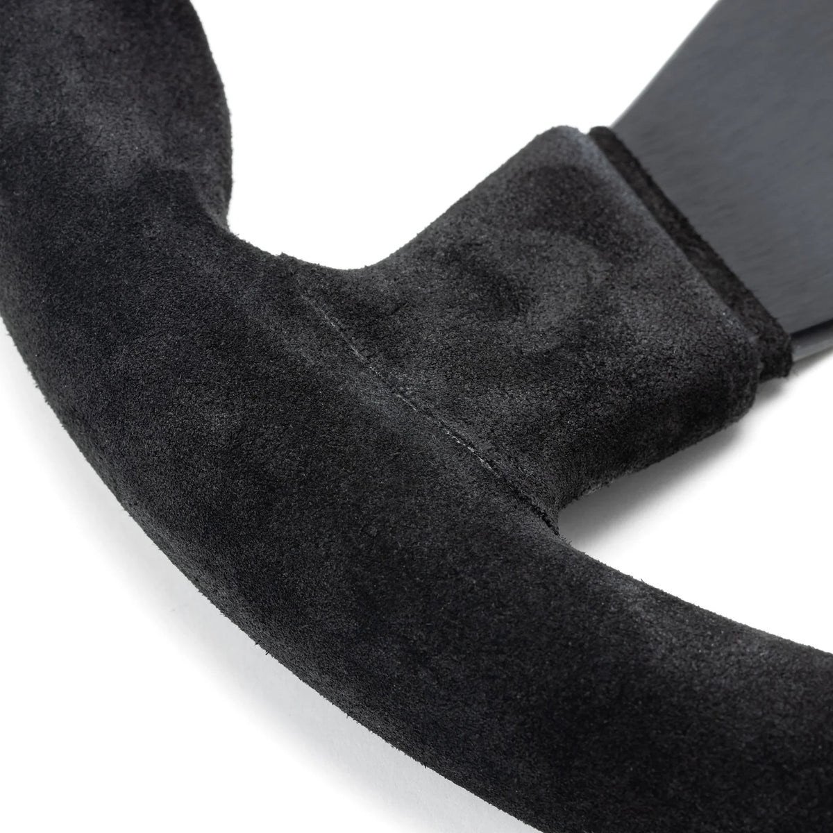 The fine Italian suede-wrapped steering wheel checks the boxes for fit, finish and feel with its ergonomic contours clocked for a confident, controlled grip. The anodized aluminum wheel also features a standard 6-lug bolt pattern compatible with most aftermarket hub adapters.