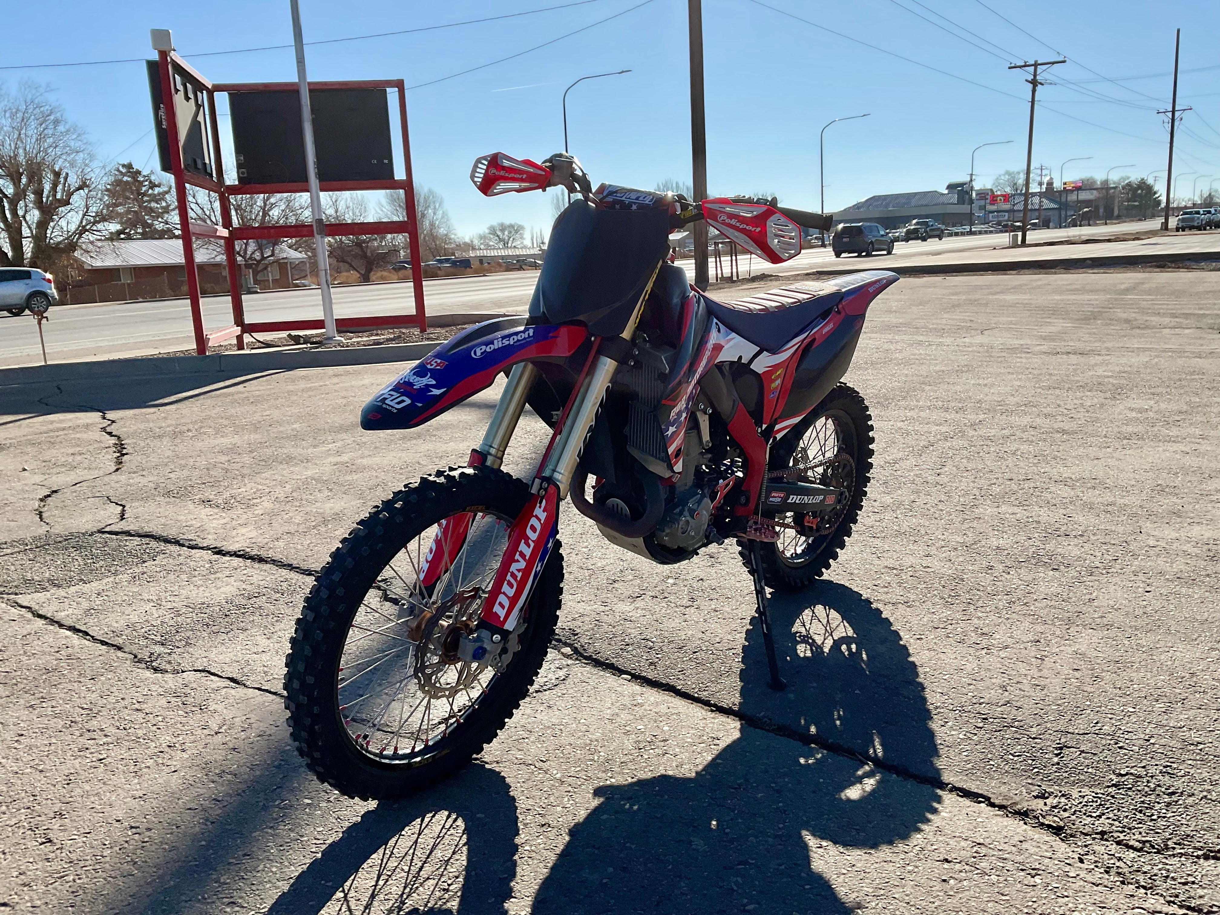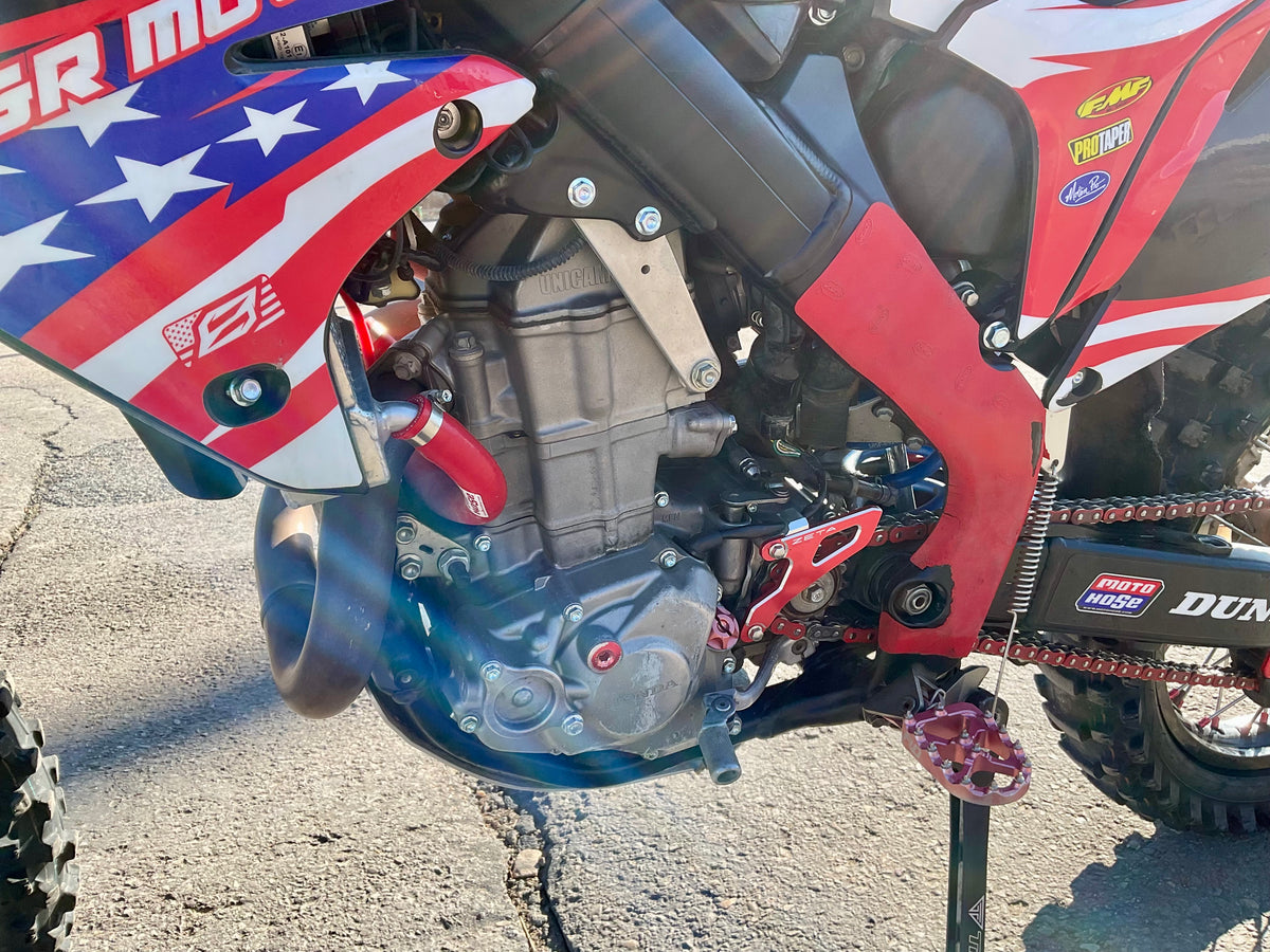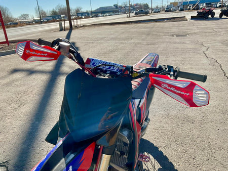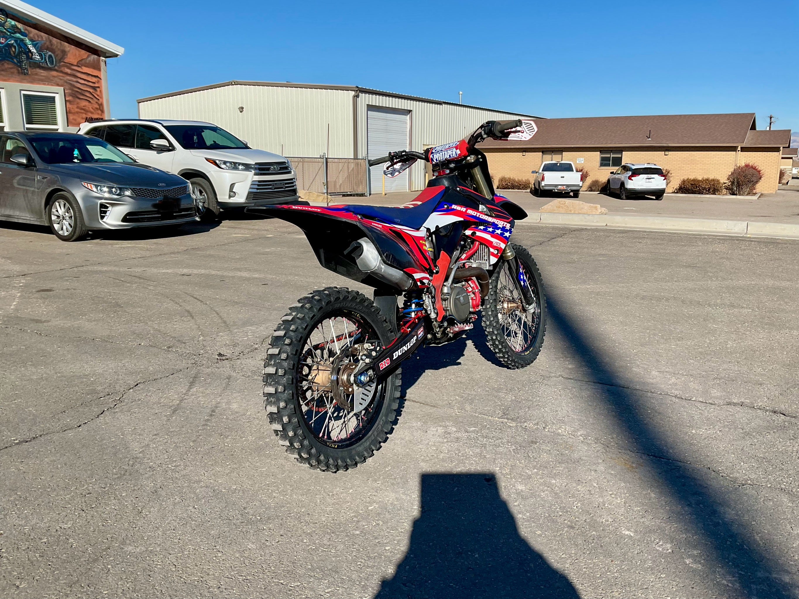 This bike has a Rekluse clutch, FMF exhaust, Flo levers, Foot pegs, Excel race wheels, custom graphics and seat.