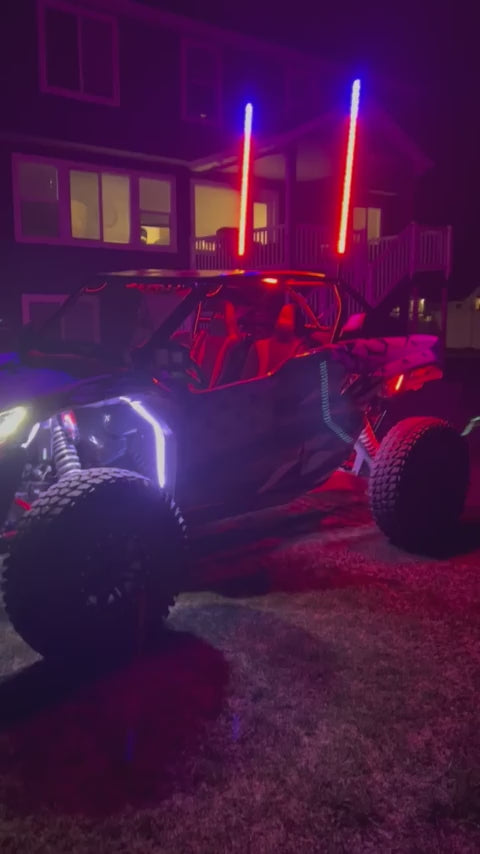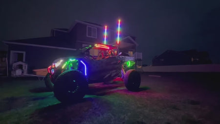 This Stage 2 Underglow kit is designed for the Kawasaki KRX specifically. We’ve matched up the perfect lengths of LEDs to pair up perfectly to the KRX 2 seat or 4 seat frame. This kit offers tons of functionality, light output, and a cool aesthetic. It also uses the same app as our Whips, Interior Lights, Wheel Lights and more. With a touch of a button on the included RF remote or through the Bluetooth app, you can have your entire car glowing exactly the way you want. We will walk you through how to route the LEDs to replicate the exact result you see on our 2020 KRX. This kit includes 12 strips that provide ultimate light output and a clean install. Enabling your ride to have one of a kind a looks and the visibility to make sure you are noticed out on the trail or on the dunes.