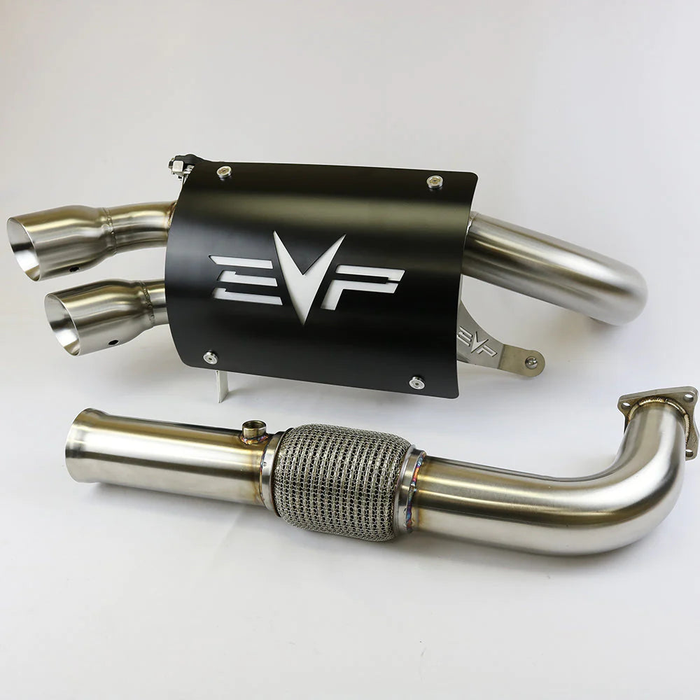 - Available as a 2.5" direct replacement muffler or 3" full system w/ EVP header (pics shown are 3" full system)