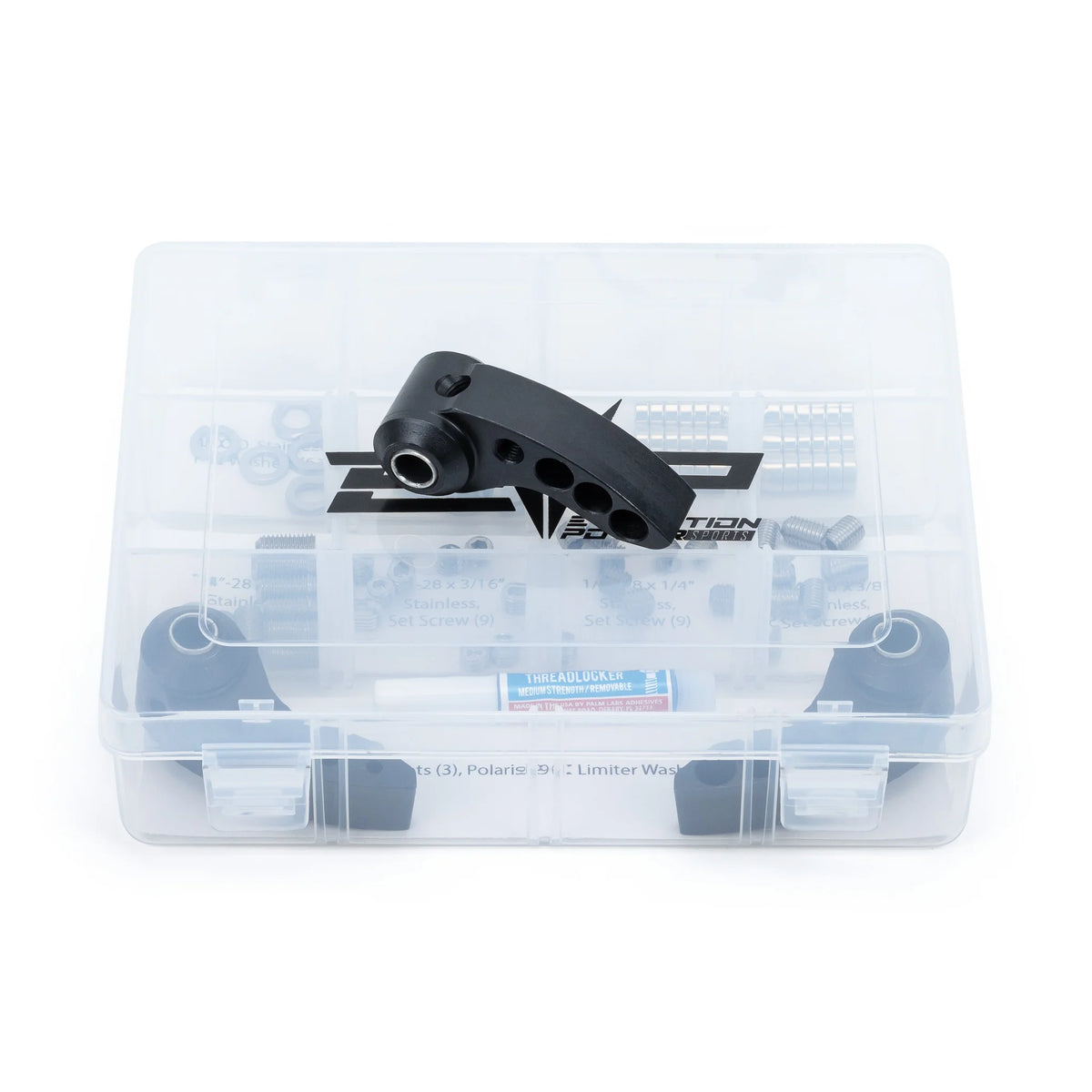 The new EVP RZR Pro R Clutch kits have enough adjustability to compensate for all EVP Pro R ECU Power Flash horsepower levels from Stage 1 up to (and including) the Paragon P54-330 Turbo System. This kit keeps clutch RPM engagement low and close to stock for a smooth takeoff, but with the included magnetic weights, it also has the adjustability to add higher engagement primary or secondary springs. In addition, the "non-notched" profile is designed specifically to cater to the geometry of the OEM Polaris clutch.