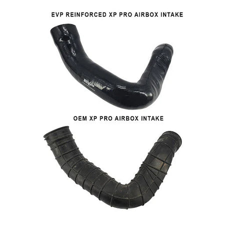 The OEM hose is made from soft, unreinforced rubber, which implodes when the airflow demands are slightly higher than stock. The EVP V-FLOW reinforced airbox intake hose is made from high-strength silicone with internal steel wire reinforcement, which guarantees the hose cannot implode.