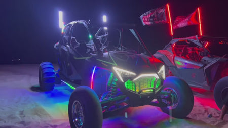 Note: this video depicts our stage 3 kit that just adds a few extra strips and pods for more intensity. This stage 3 kill will be available shortly. The Stage 2 kit is identical to the kit shown in the front end minus the additional pod shown, full length side strips are included in the stage 2, and in the back of the car there will be one less strip and no pods. Light output will still be awesome.