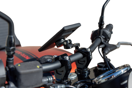 Mount your mobile phone in the desired position on the handlebar clamp of your motorcycle. Interchangeable heads for SPC/SPC+.
