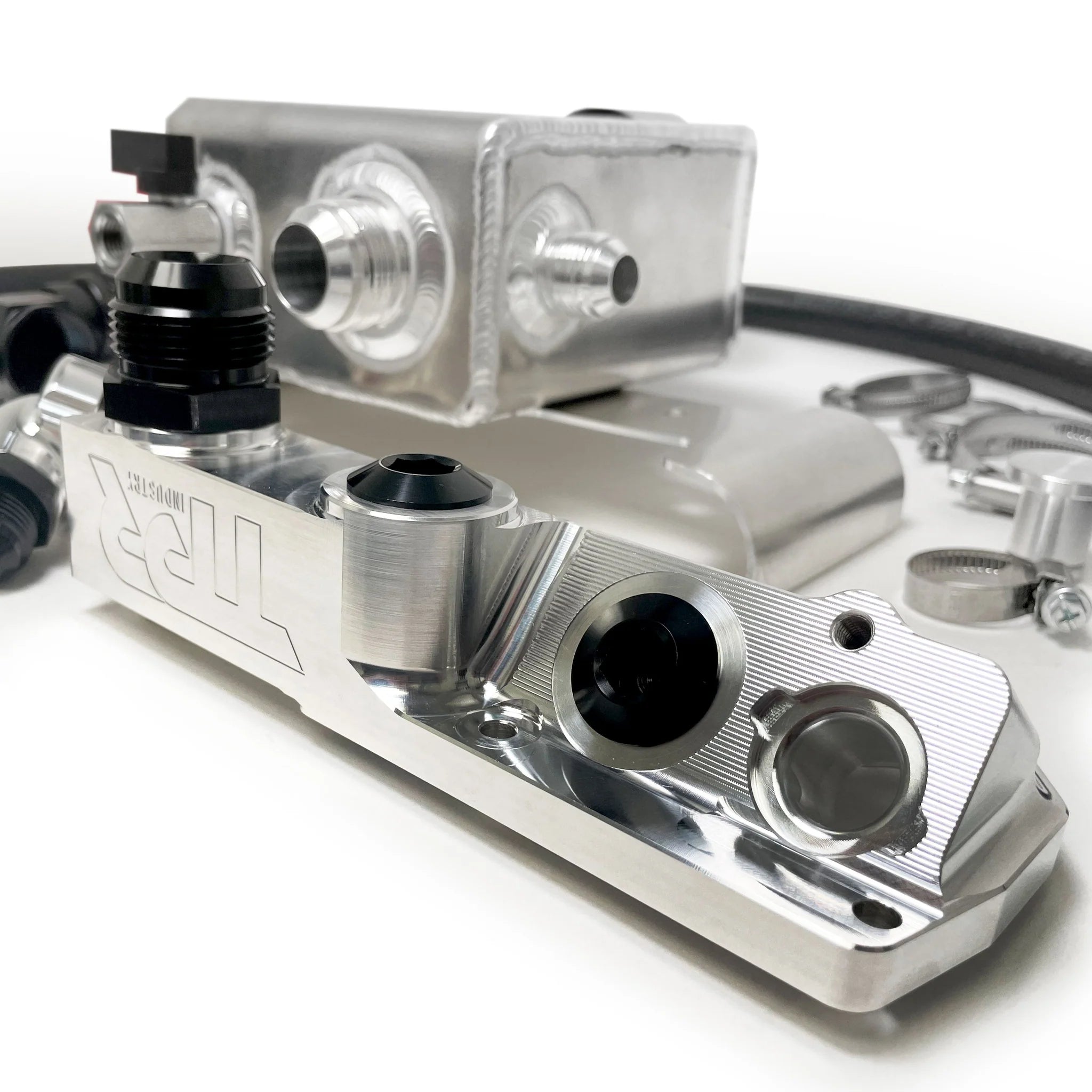 This kit also includes the billet TPR Breather Block, a direct replacement for the OEM cast part that allows you to install larger and additional breather lines.