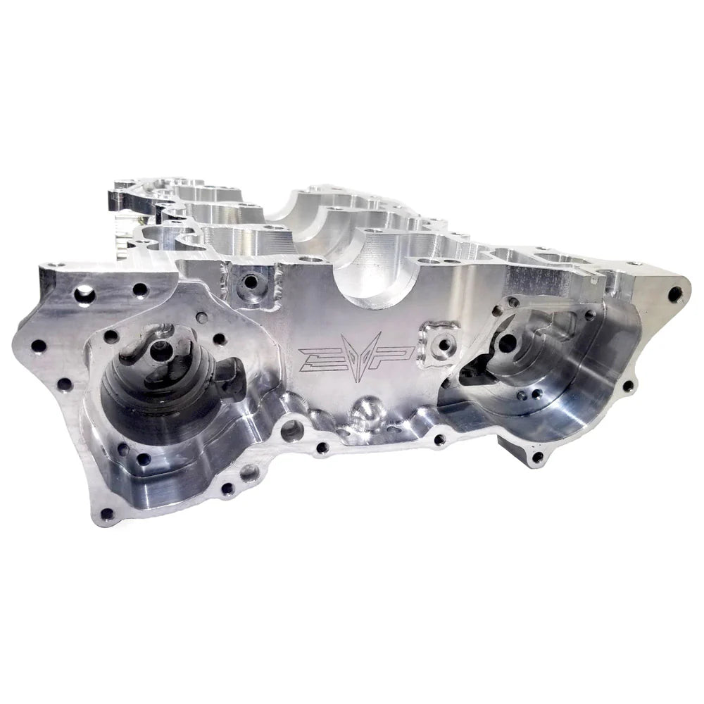 EVP's XR Series Billet Cradle provides additional stability to the bottom end to run BIG boost. Machined from a solid block of 7075 T6 aluminum for maximum structural support and reinforced in critical areas. Our own in-house engines have made 700+ horsepower with the XR Cradle. In addition to the added strength, the XR Billet Cradle gives you the ability to stroke your X3 without machining out the lower case!