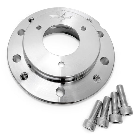 The EVP Billet PTO Cover adds strength in an area that needs reinforcement with high horsepower and especially with high RPM launches. The cast OEM cover is thin around the bearing housing causing it to fail under extreme launches, which can lead to crankshaft damage. Available as a standalone cover or as a kit with seal, bearing, gasket and retaining ring, the EVP Billet cover solves this issue by adding strength and stability to the end of the crankshaft that receives the most abuse — the clutch side